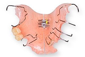 По назначению ортодонта их изготавливают индивидуально или выбирают из стандартных. Вестибулярные пластинки отодвигают мягкие ткани губ и щек и не позволяют им мешать правильному росту челюстей. Так же вестибулярные пластинки могут содержать конструктивные элементы позволяющие улучшить функцию мышц языка и рта и изменить положение нижней челюсти. Эти пластинки не требуют постоянного ношения. Обычно ребенок должен их надевать во время ночного сна и дополнительно носить пару часов днем.